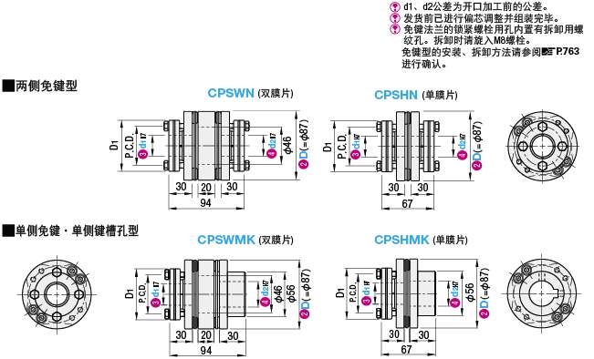 雙膜片聯(lián)軸器和單膜片[剖視圖]
